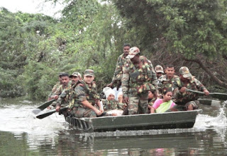Soldiers of the 'Indian Army' and the 'India Navy' and the members of the 'National Disaster Relief Force'/'NDRF' , 'OLA Boats' and many 'Volunteers' from various 'Non Government Organizations' / 'NGO's participated in the 'Rescue Operations' of the people stranded in the floods submerged houses, using Motor Boats& Fishing- Row Boats belonging to the fishermen of 'Chennai' and Rescue boats/ Floats.